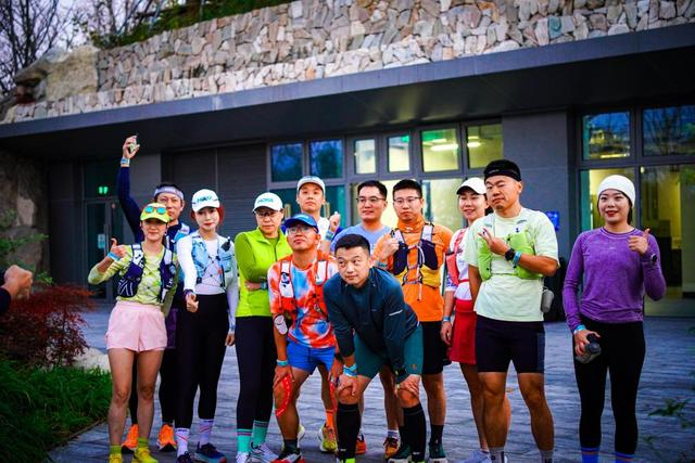 ↑跑团成员身着全套户外装备在双子山准备跑越野