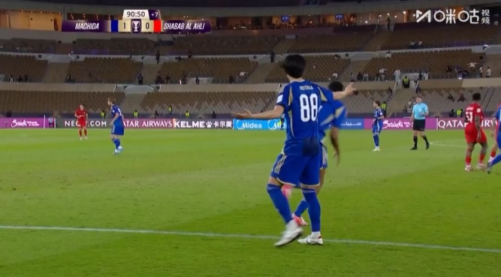 04月22日讯 亚冠精英联赛半决赛,町田泽维亚1-0击败迪拜国民,迪拜国民第92分钟世界波绝平被吹引争议。